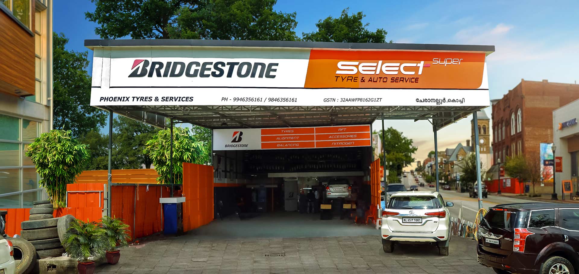 PHOENIX TYRES AND SERVICES has been servicing at Thrissur,(Near Hyson Motors, Puzhakkal) since 2010. Now this year, in 2020 we are happily launching our sister concern at Ernakulam (III/14A, Kalamassery Road, Cheranallur, Signal Junction). Our showroom are well equipped with most advanced wheel alingment machines. We care for your valuable time, and are happy and ready to serve you with the less time. We service all types of cars. We have a vast collection of all branded tyres.